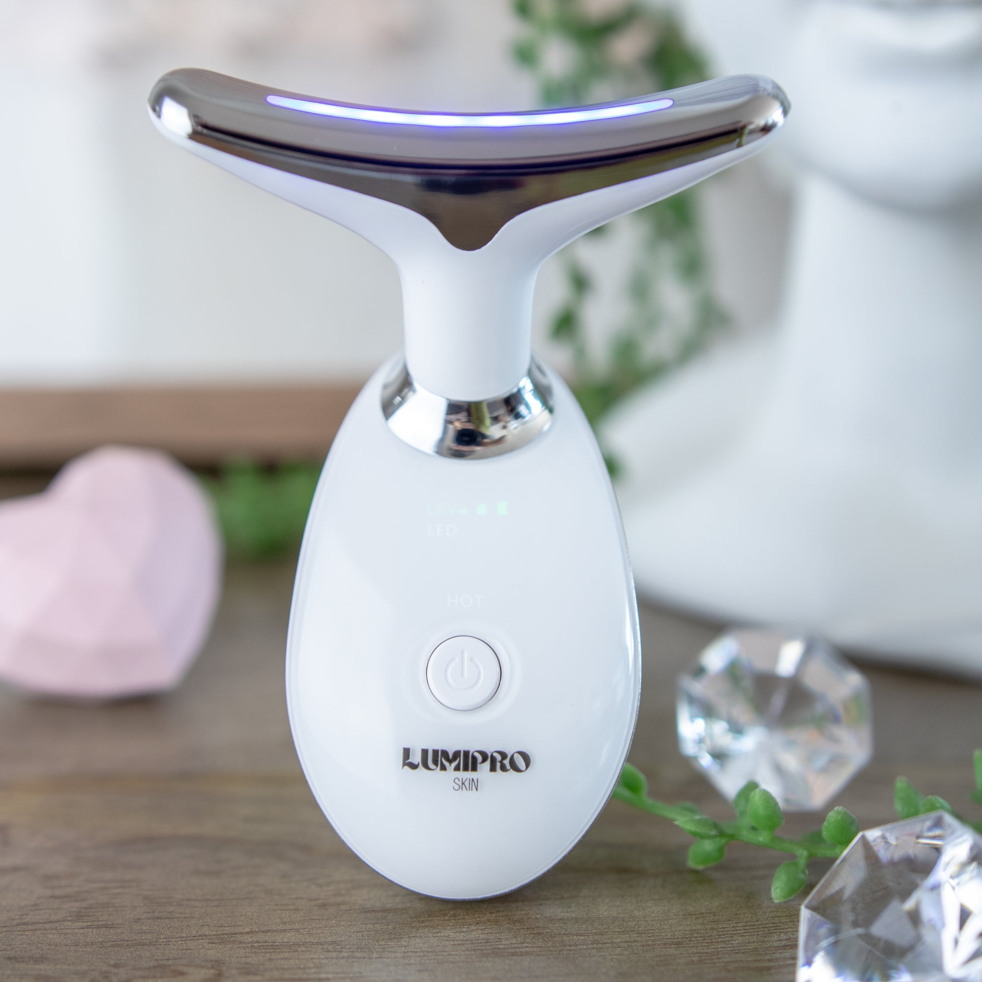 LUMIPRO SKIN integra luces LED terapéuticas, microcorrientes EMS y masaje térmico de 45°C, una combinación que normalmente solo encuentras en clínicas dermatológicas. -